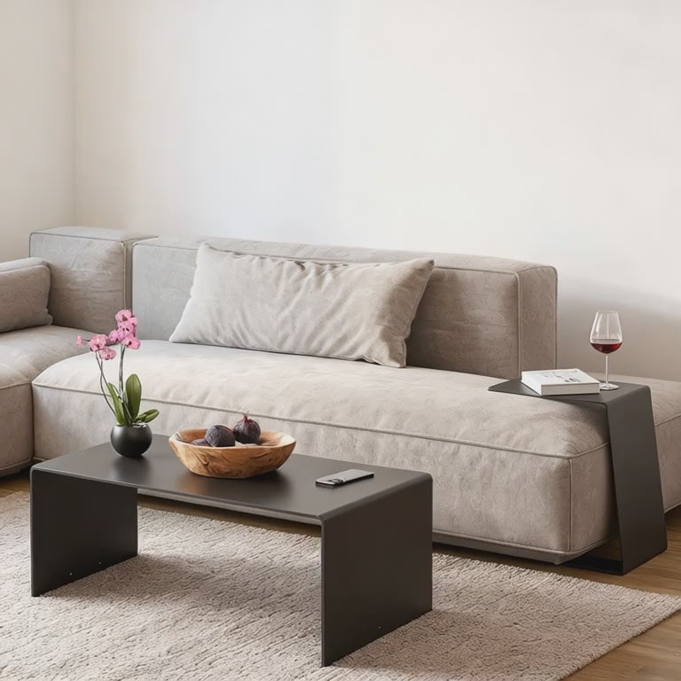 Entdecke den eleganten Couchtisch "Mattes" – ein echtes Schmuckstück aus hochwertigem 6 mm starkem Aluminium, das in Deutschland hergestellt wird. Dieser schicke Tisch kombiniert zeitlose Eleganz mit praktischer Funktionalität und wird in deinem Wohnzimmer garantiert zum Hingucker.